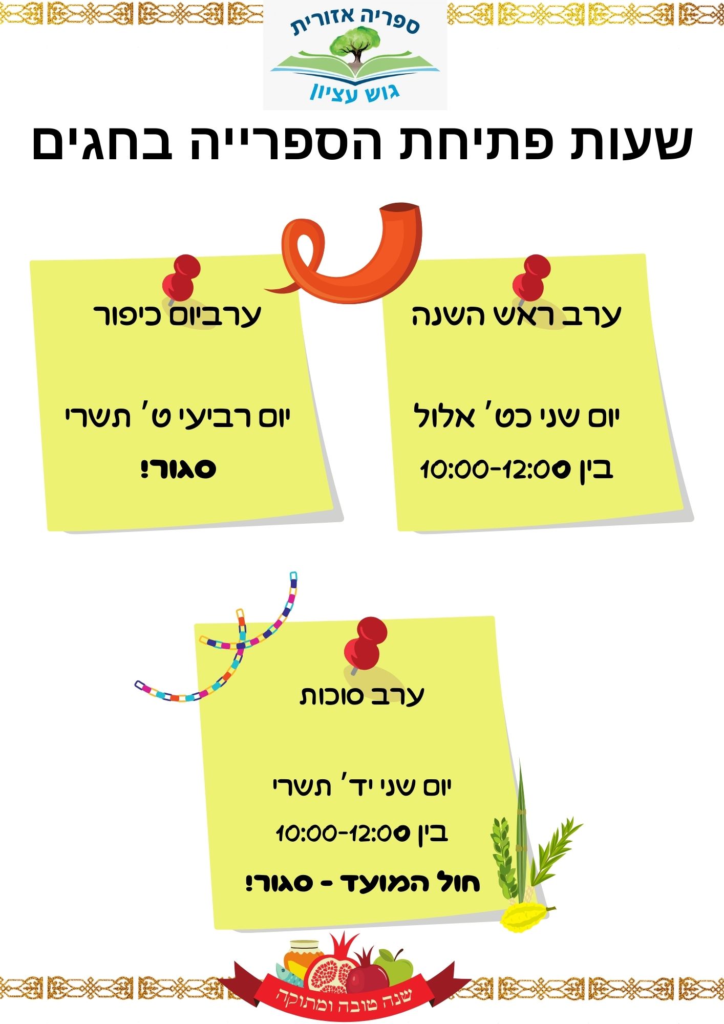 [caption id="attachment_2508" align="alignnone" width="1414"] שעות פתיחת הספריה בחגי תשרי תשפ"ו...